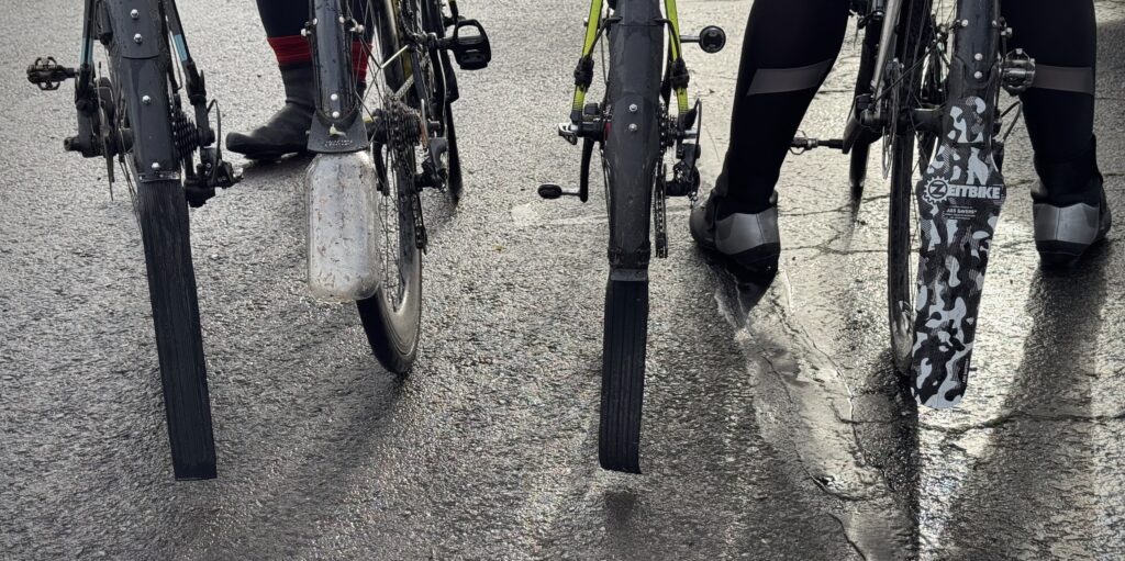 We love having the brave souls who venture out when it’s weather roulette season. Fenders are a must when the roads are wet, even if there is no water directly from the sky.